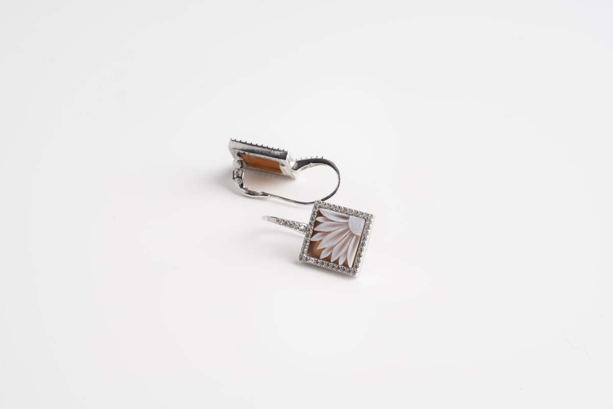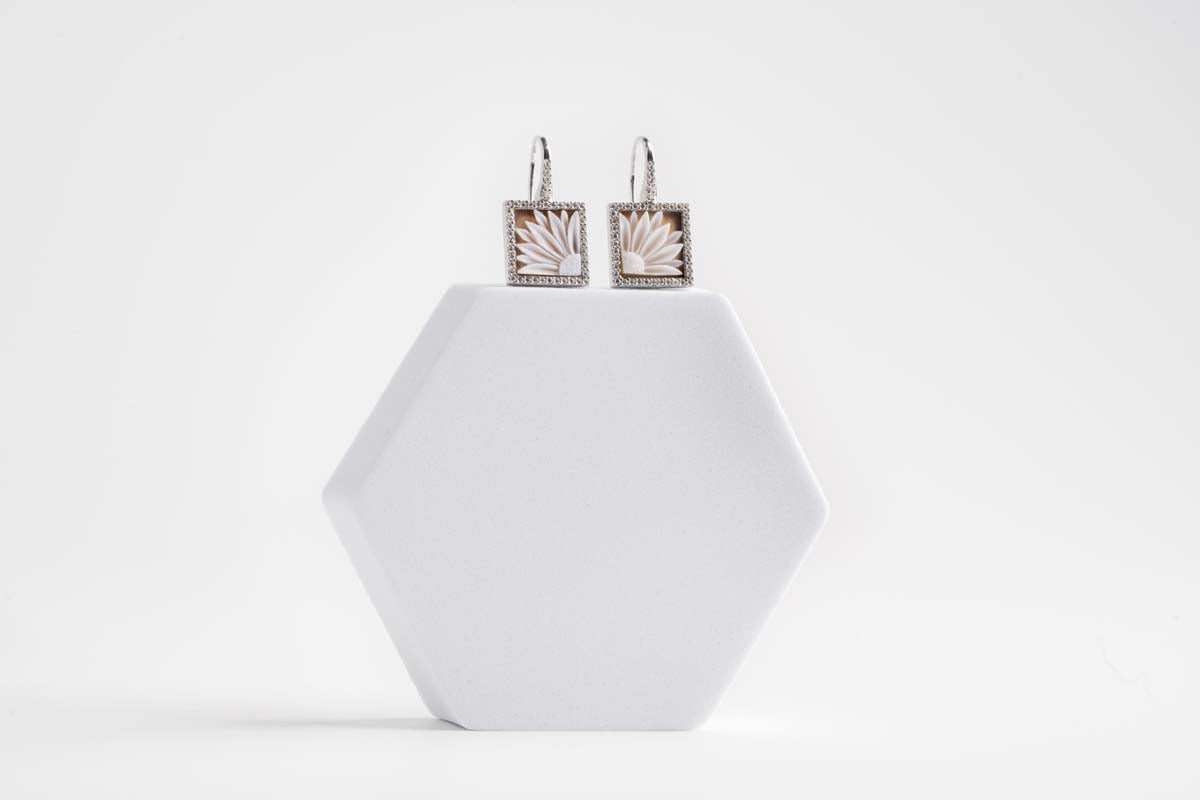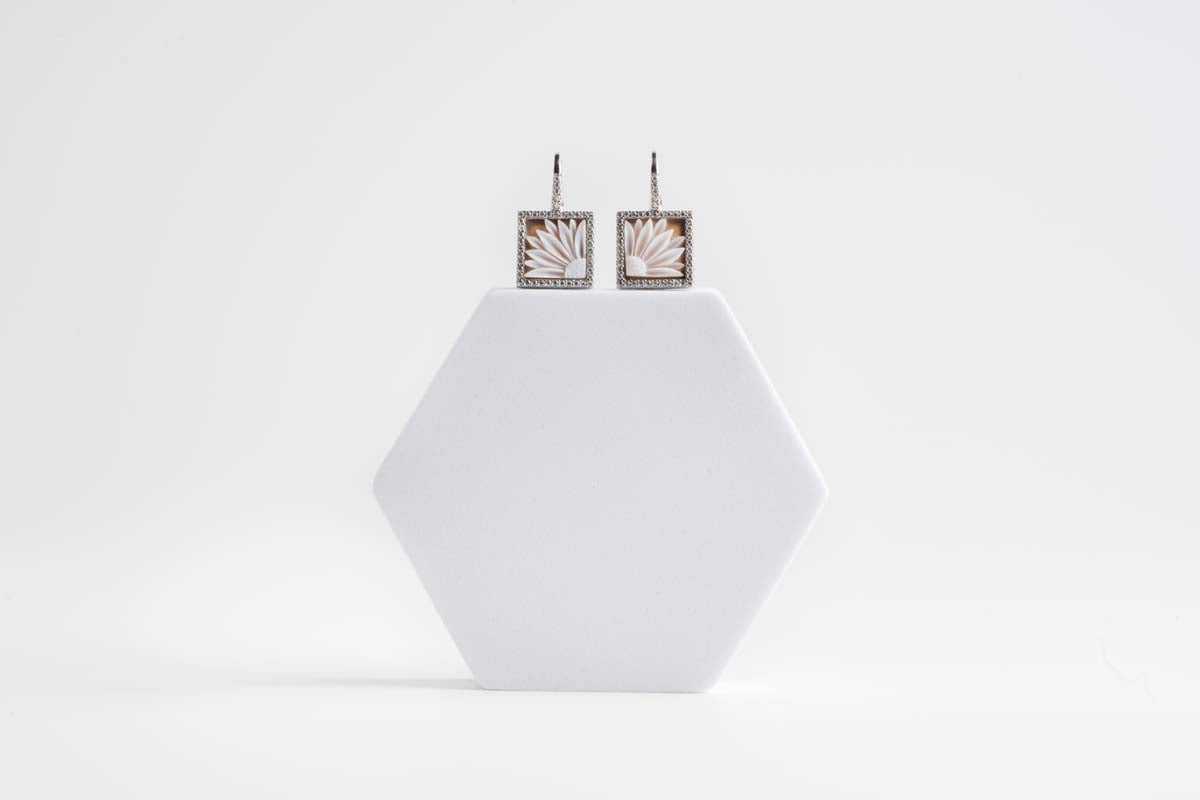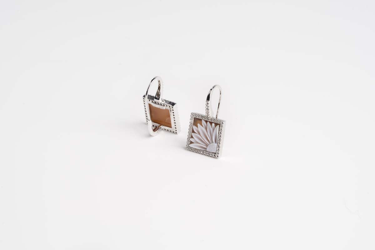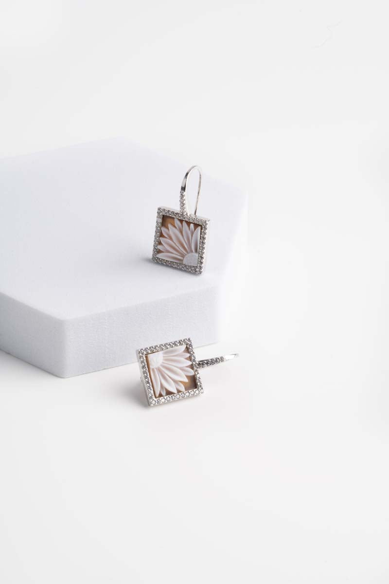 Orecchini in argento 925‰ con cammeo inciso a mano dalla forma quadrata.Chiusura a monachina.Dimensioni 1,5 × 1,5 cm.